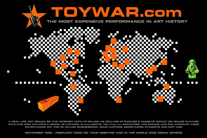In November 1999, at the height of the e-commerce gold rush, a hearing in a Los Angeles courtroom wrenched open the fault lines that ran through the Internet. On one side, eToys.com the billion-dollar darling of Wall Street, the brain-child of Toby Lenk, one of the hottest entrepreneurs of his generation. On the other side, etoy.com, a group of bleeding edge European artists, hungry for fame, who used the internet as their canvas. The struggle between them became known as the Toywar.